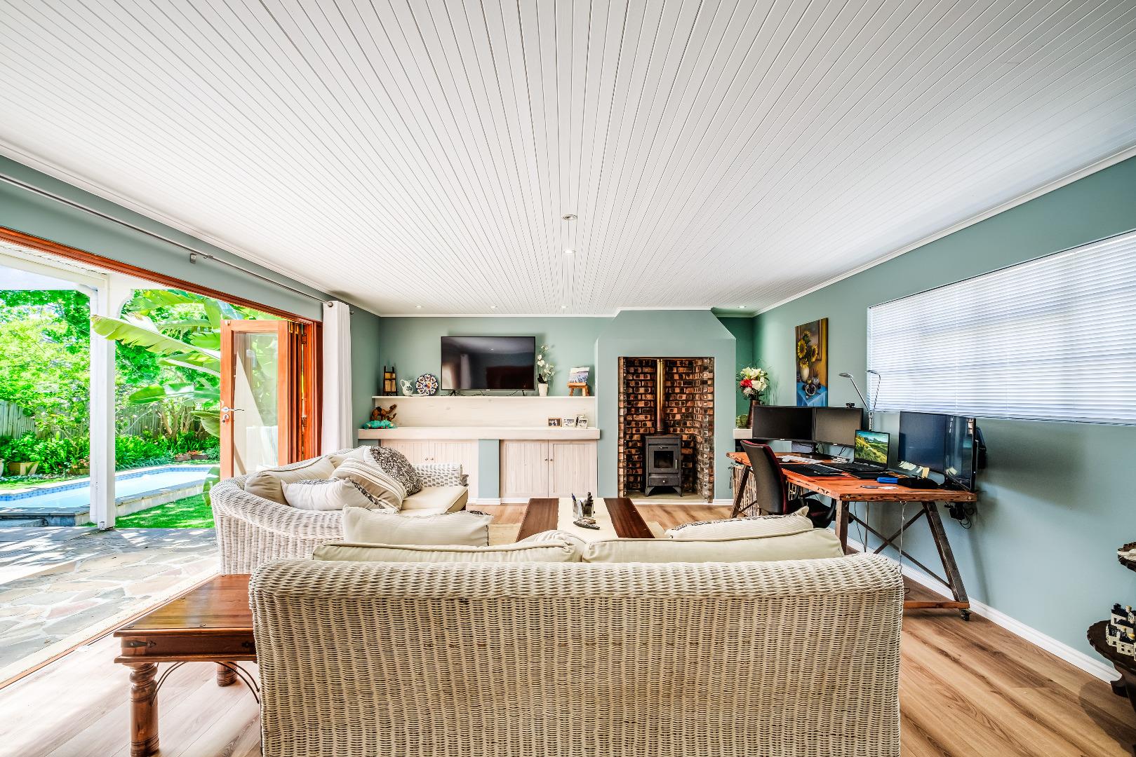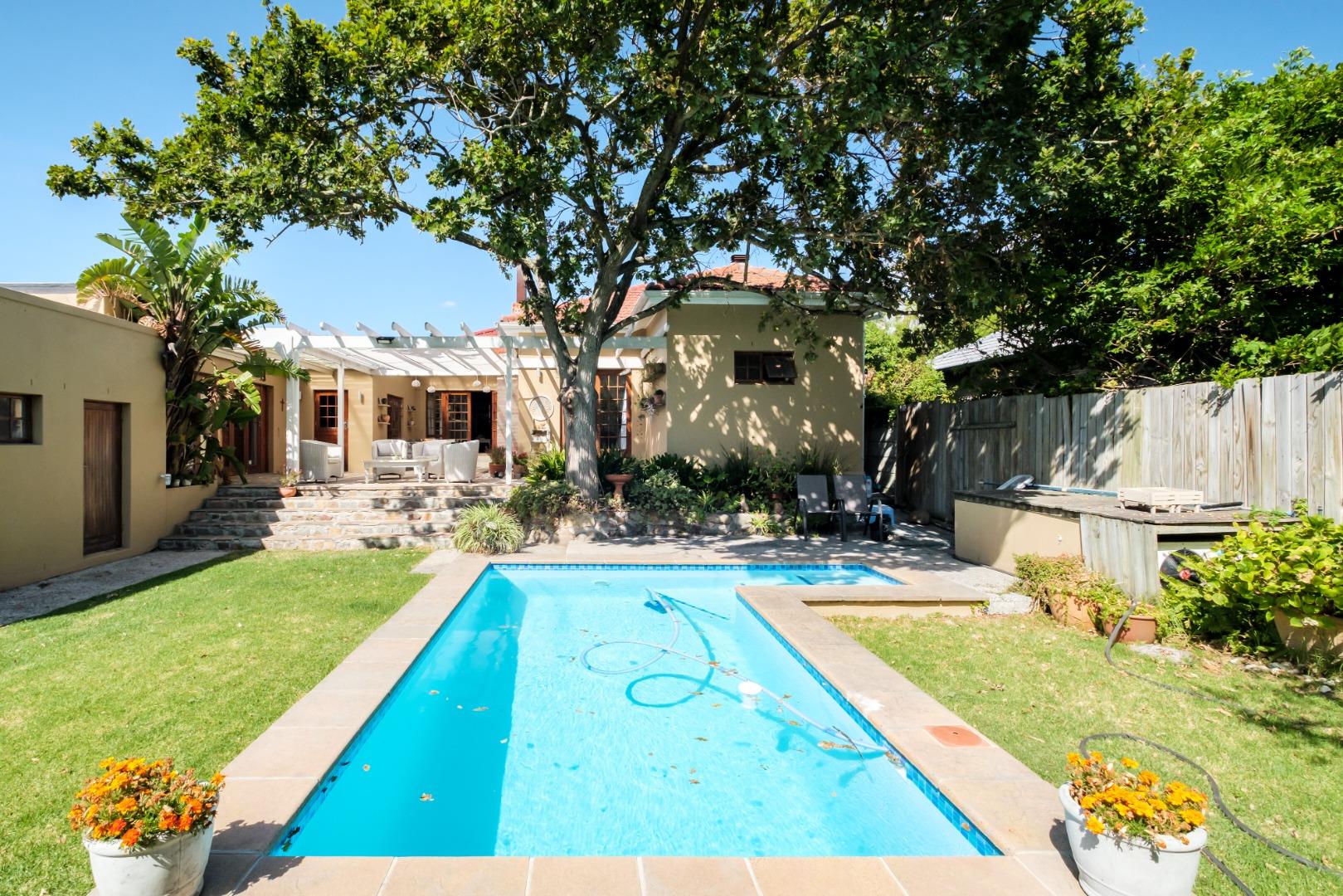 SOLD BY US. Pinelands. New Release. Exclusive Instruction. Experience a sense of peace and tranquility as you enter through the automated gates of this charming, north facing, versatile and spacious home offering dual living options. With effortless indoor/outdoor flow from the living spaces, this home caters to the needs and privacy of each family member. The entertainer's dining room has interleading doors to a large lounge with a wood burner and double doors onto an undercover patio with built in braai. Continued flow onto a sparkling, north, fibre glass pool in a private and lush garden. One of the other two family rooms has a fireplace and is open plan to a quality, classic, eat in kitchen with a pantry, scullery and plumbing for a dishwasher. Plus a separate laundry room. A study and 4 double size bedrooms (built in cupboards). 3 Modern bathrooms (main en suite). The main bedroom is extra large and has a fireplace and french doors onto the private front garden. And a teenage pad/home office/staff quarters (bedroom with en suite bathroom) with its own entrance. Double carport and automated double garaging. An alarm system and beams right around the property. 15,000 litre standby rainwater system, prepaid electricity meter, wifi, fibre and inverters. And many other features you need to see. No electric fencing - neighbour's Chlorine pool, fibre glass only 4 years old. Electric pool heater Ceiling fan in main bedroom Kitchen and all toilets have extractor fans Either a municipal system or a rainwater system All rainwater goes through the whole house filtration system. UPS in garage. Lithium 120 amp power 1500 watt back up system which runs the lights and 3 plug points for TV and wifi Grasp this incredible investment opportunity.